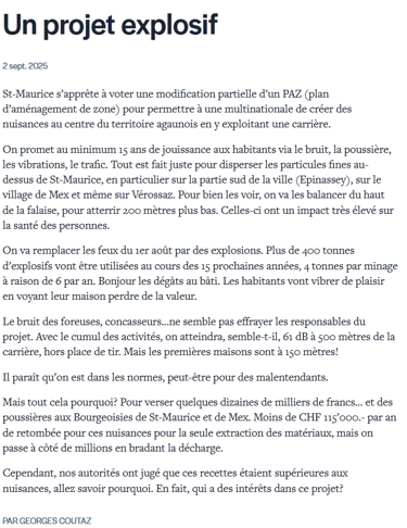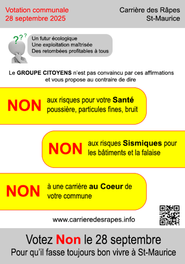 En discussion depuis 2017, le projet de fin d’exploitation de la carrière des Râpes a été désapprouvé ce dimanche par les citoyens de Saint-Maurice. L’avenir du site reste en suspens.